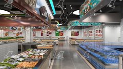 同時,在攤位設計上融入細節巧思:鮮肉區采用不銹鋼臺面搭配抽油煙機,避免油污擴散;水產區設置下沉式魚池和防滑地面,解決積水難題;蔬果區則用原木色貨架分層陳列,搭配暖光燈突出食材的新鮮色澤,讓買菜過程成為視覺享受。