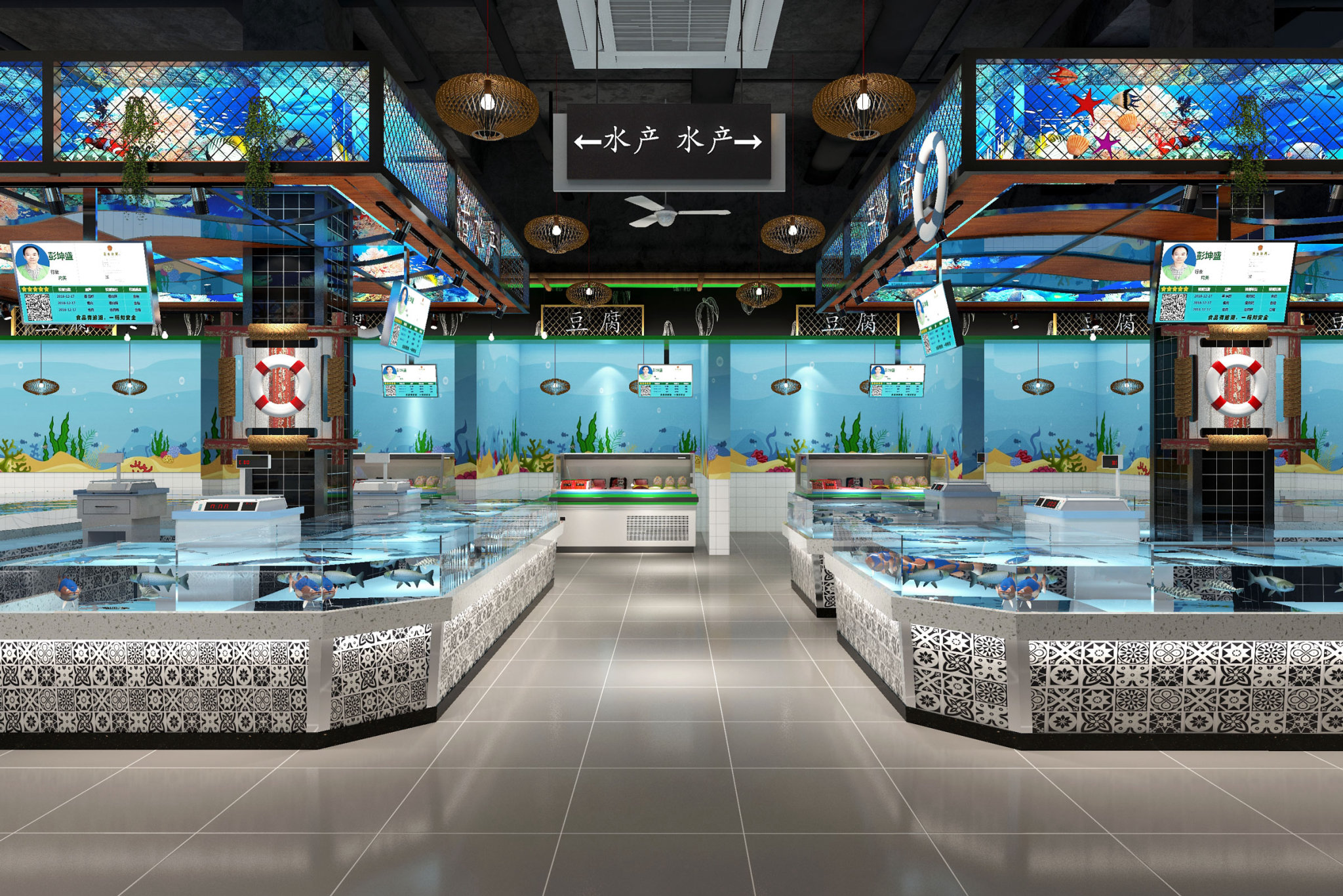 耐用易維護的空間基礎,是煙火氣延續的根基。菜市場環境特殊,設計必須直面潮濕、重載與高頻清潔的實際需求。地面選用防滑耐磨的材質,精準的坡度引導水流走向,隱蔽高效的排水槽杜絕濕滑隱患;攤位臺面與墻面采用抗污易潔材料,一擦即凈的特性減輕日常保潔負擔。充足均勻的照明不僅還原商品真實色澤,更保障交易過程的清晰安全。這些扎實的實用細節,既維護著環境整潔、降低運營成本,更讓煙火人情有了生長的土壤。?
