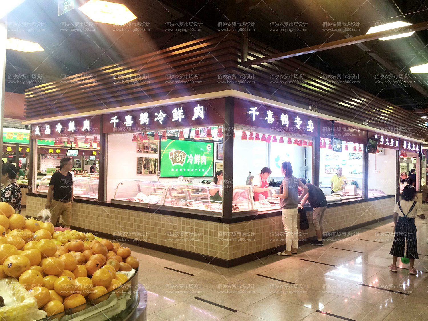1、現代裝飾風格,突出市場容量、規模體驗感,成為農貿行業典型的標志;市場上有便捷的產品渠道和完善的安全檢測體系,各功能區協調發展,日常管理穩定有序。