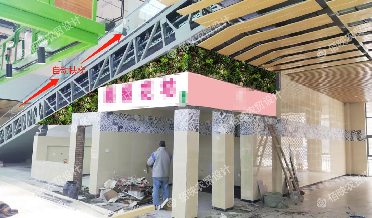 (如圖所示,自動扶梯下方的傾斜空間,被充分利用,右側規劃了一間店面、左側規劃了一間配套用房)
