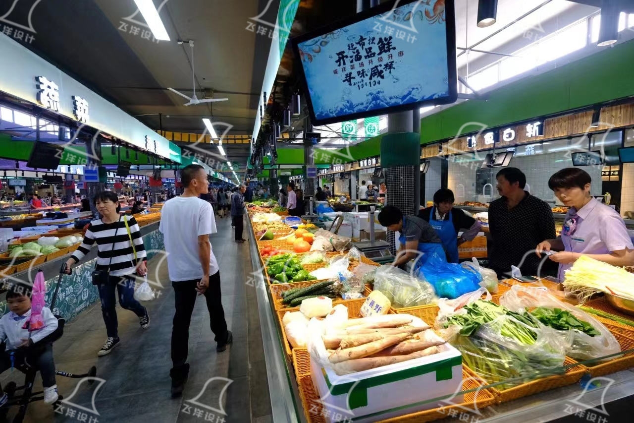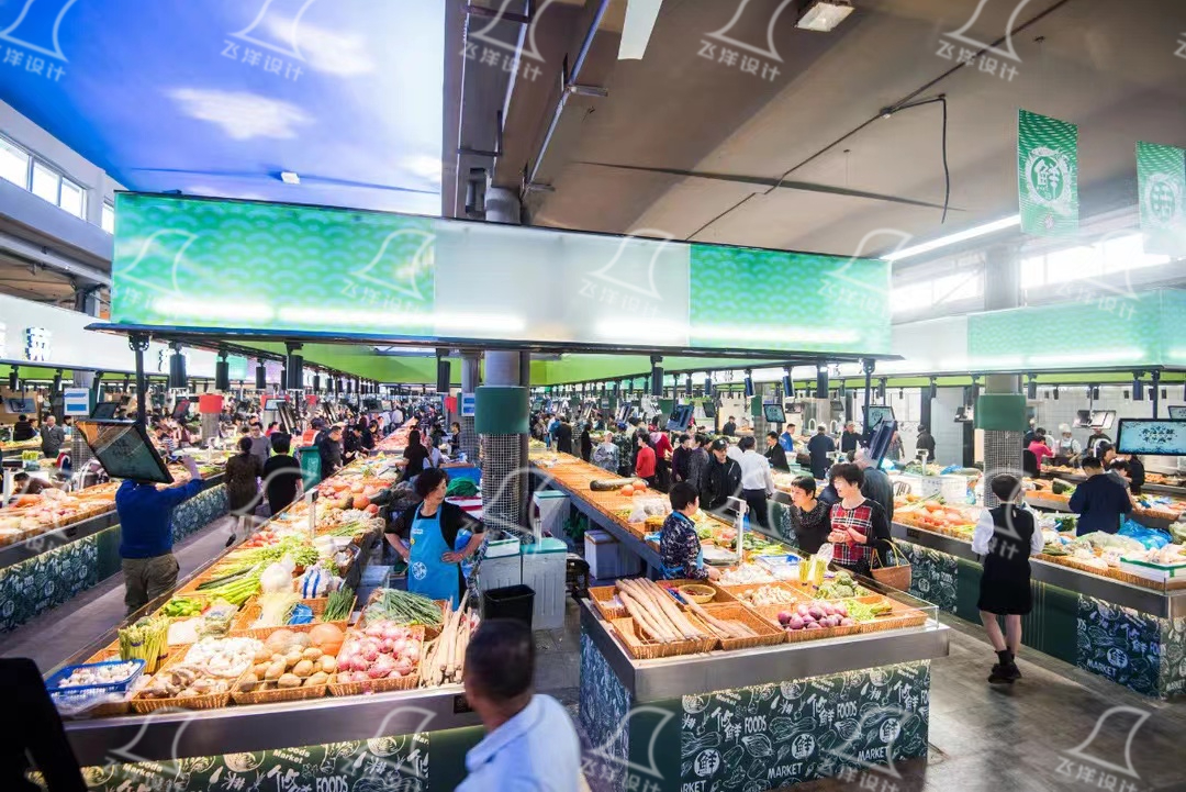 綜上所述,專業農貿市場設計通過對空間規劃的改造,不僅重塑了現代化農貿市場的商業價值,更以設計語言搭建起“買菜+社交” 雙場景。飛洋設計始終秉持 “設計賦能生活” 理念,致力于將人文關懷融入每一處空間細節,為客戶打造兼具功能性與社交性的農貿市場。?