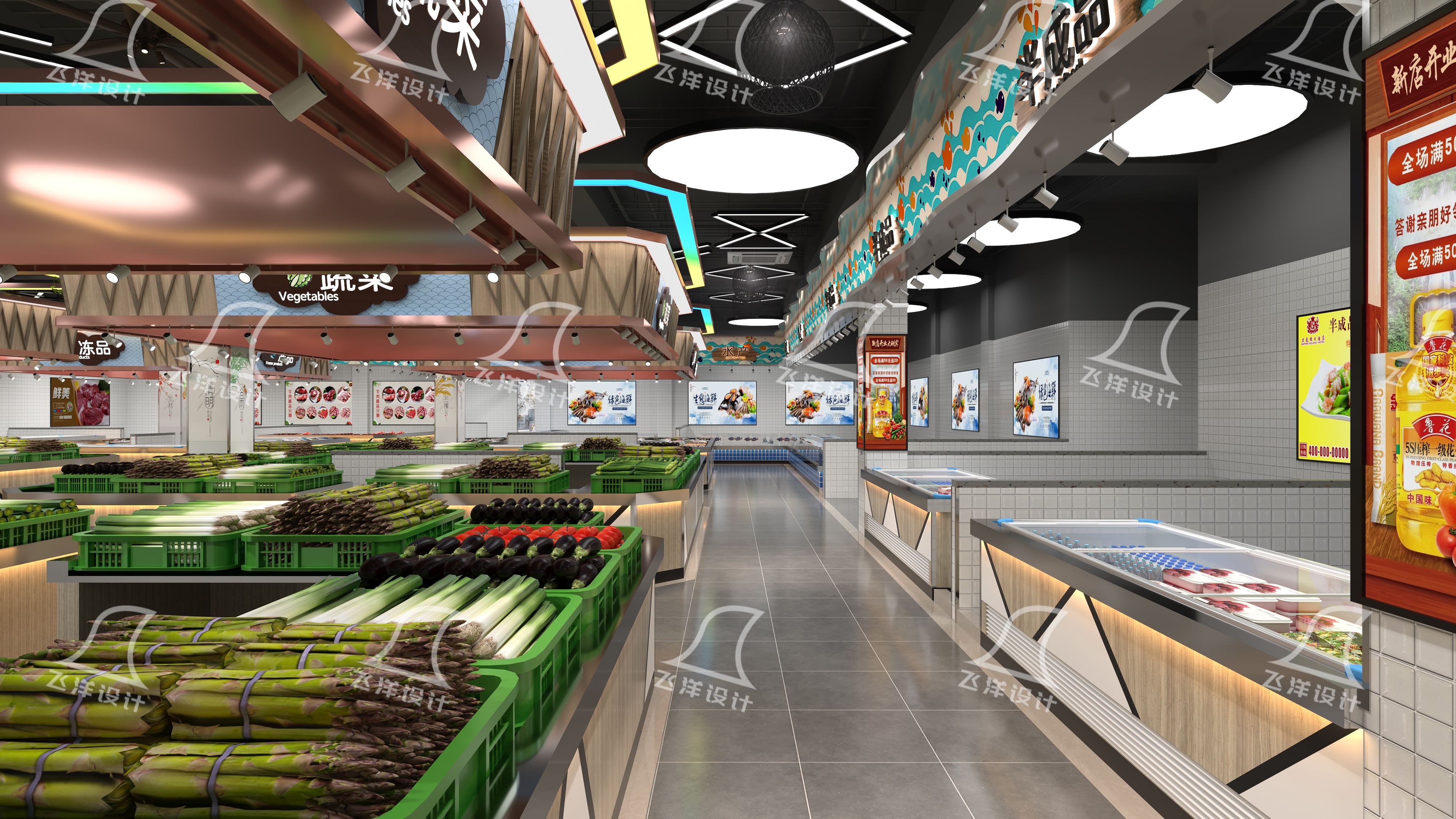 功能分區要清楚,賣蔬菜、水果、肉類、熟食、干貨的區域要分開,用明顯的標牌引導顧客。比如熟食區要和生肉區、水產區保持距離,避免交叉污染;水產區地面要做特殊處理,排水要快,防止積水。?