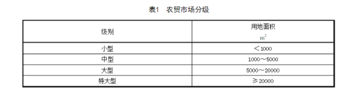 農貿市場(以下簡稱市場)按表1的規定分級。
