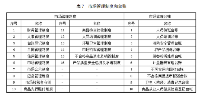 表7市場管理制度和臺賬
