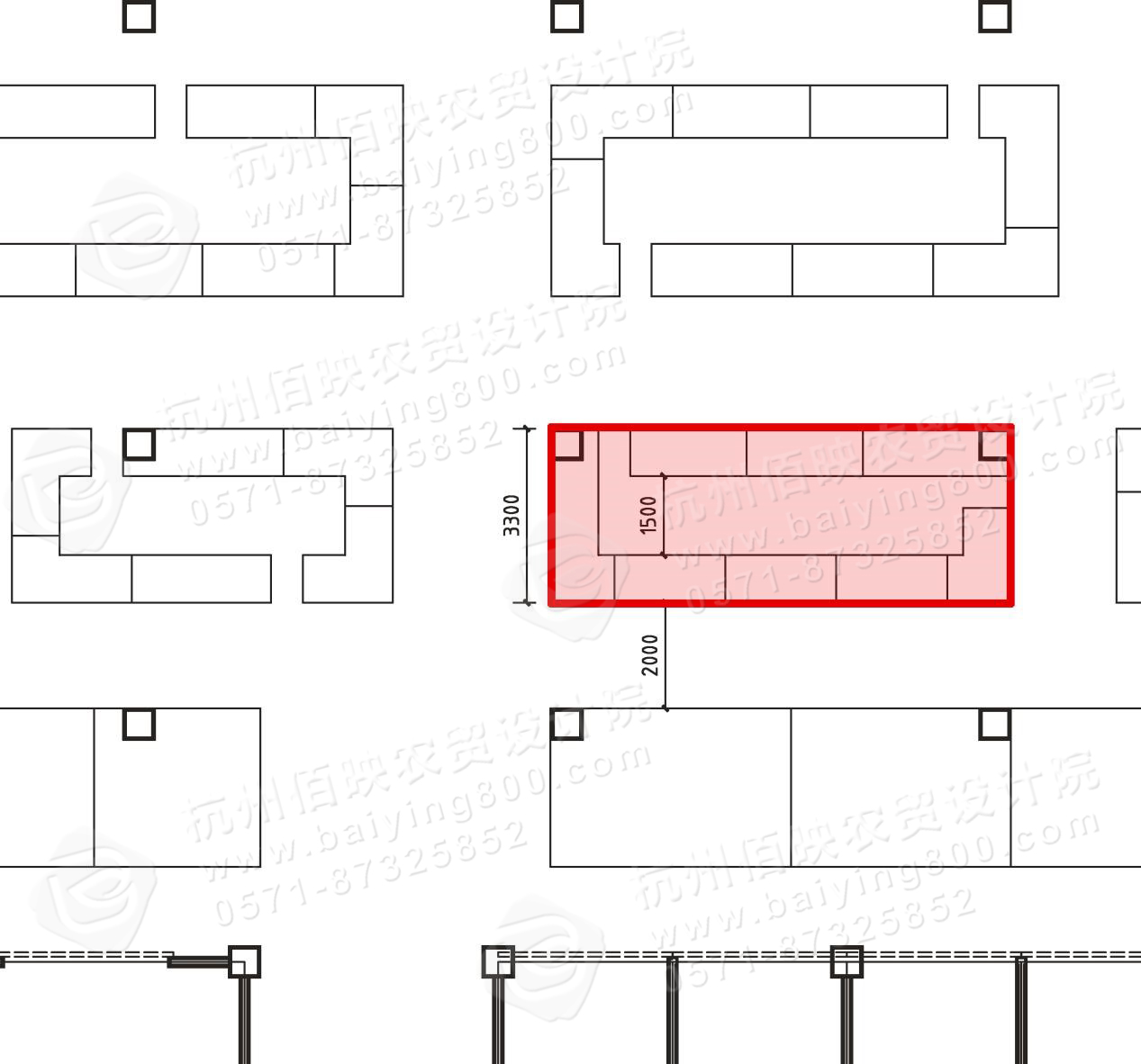 在這個(gè)例子中,柱子過密,在預(yù)留2米寬通道之后,攤位總寬只有3.3米,而攤位內(nèi)空部分僅有1.5米,背對背的兩個(gè)經(jīng)營者每人平均分得的活動寬度僅有0.7米,完全無法滿足日常經(jīng)營活動,更無法放下配套設(shè)備(如冰箱、操作臺、水槽等)。要滿足攤位的常規(guī)寬度4.5米以及通道的正常寬度2.5米,應(yīng)該將柱距增加1.7米,那么這個(gè)攤位的布置就能夠完美無瑕了,而現(xiàn)狀如此別扭的攤位空間,完全是可以通過調(diào)整柱距來避免的。